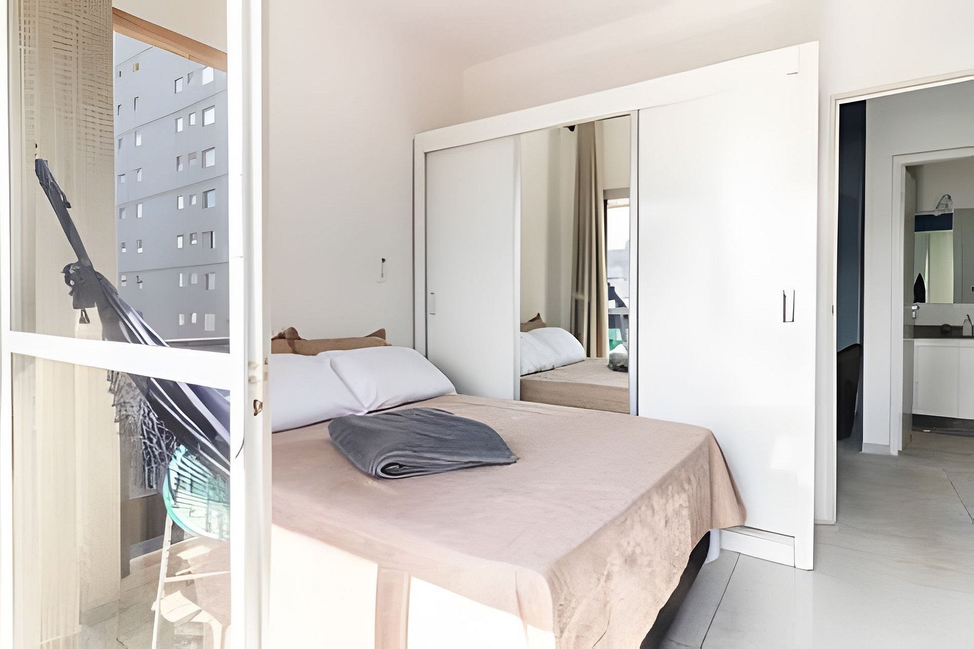 Apto com vista pro mar, climatizado e em frente a praia (pé na areia). Com vaga de garagem e portaria 24h! Vídeo do apto em @airbnb.studios Localizado em uma das melhores regiões de São Vicente, próximo ao shopping, centro e supermercado. Com uma confortável cama de casal, já com a roupa de cama. Além de TV de 50” com NETFLIX. Cozinha completa com fogão, geladeira, microondas, mesa com 4 banquetas e jogo de louça. Com área de serviços. Com vaga de garagem interna.