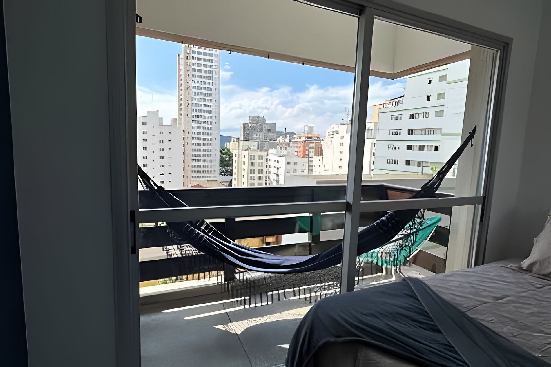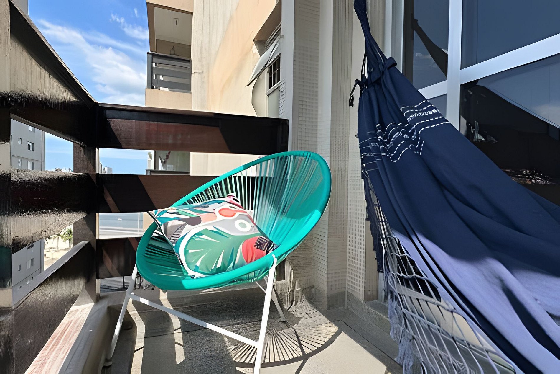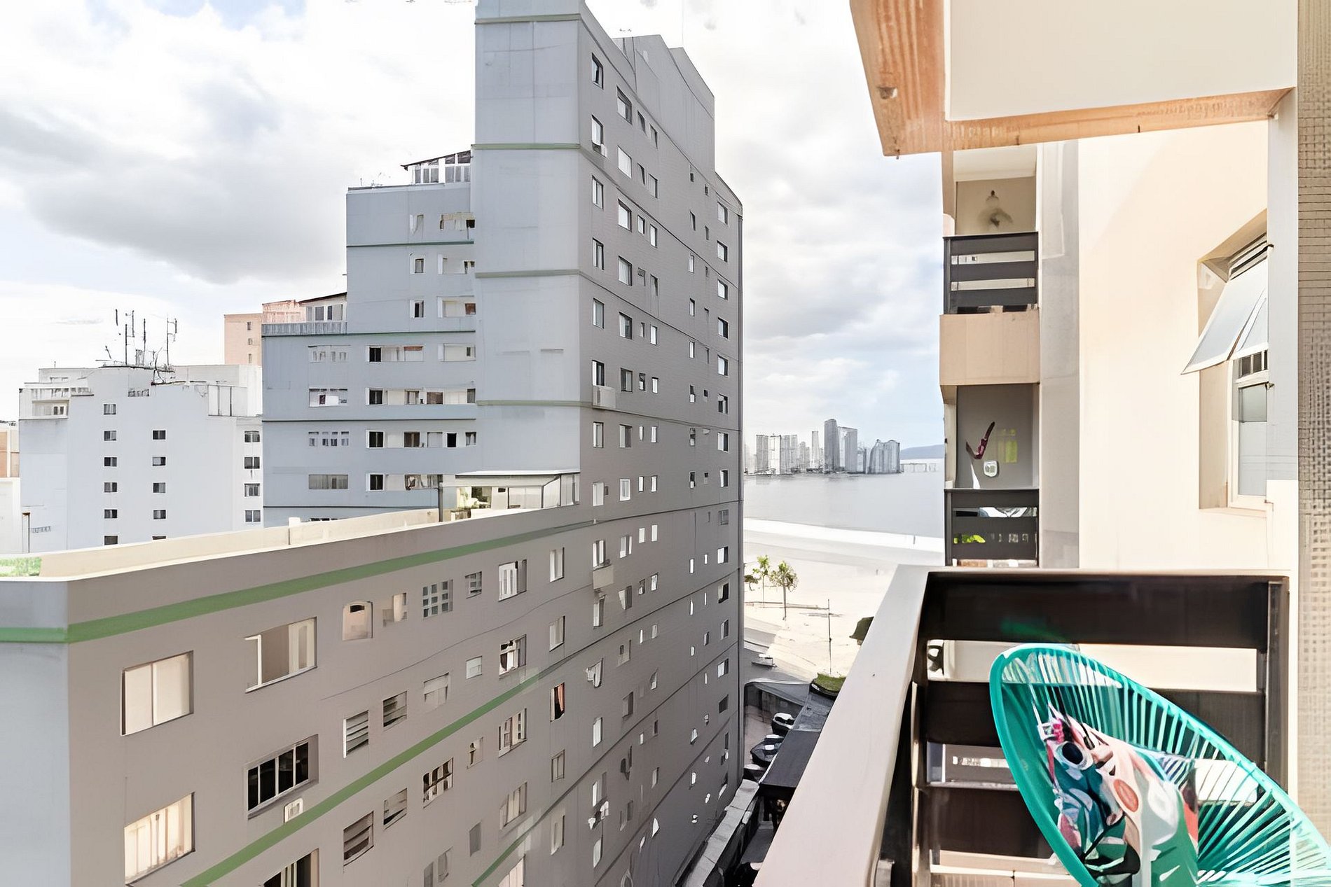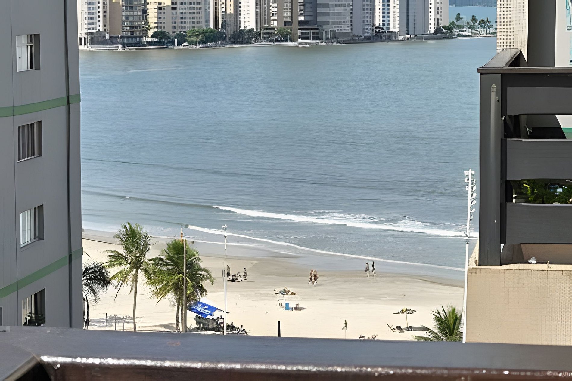 Sacada com vista pro mar! Em frente à praia. Basta atravessar a rua! Vaga de garagem e Portaria 24h. O apartamento é muito confortável e acolhedor. Cama confortável, ar condicionado e um belo chuveiro.